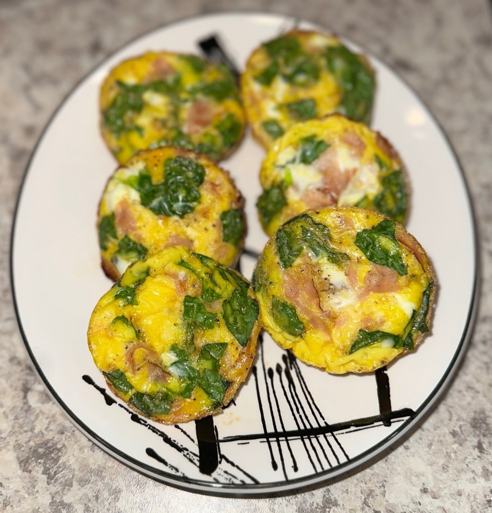 These egg bites are a quick and easy breakfast staple here in our home. My 11 month old has been eating them since she was about 10 months old and she tears them up! It’s a great way for her to get her protein and veggies all in one. I serve these with her favorite fruit on the side. You can also substitute the ham for your choice of protein.